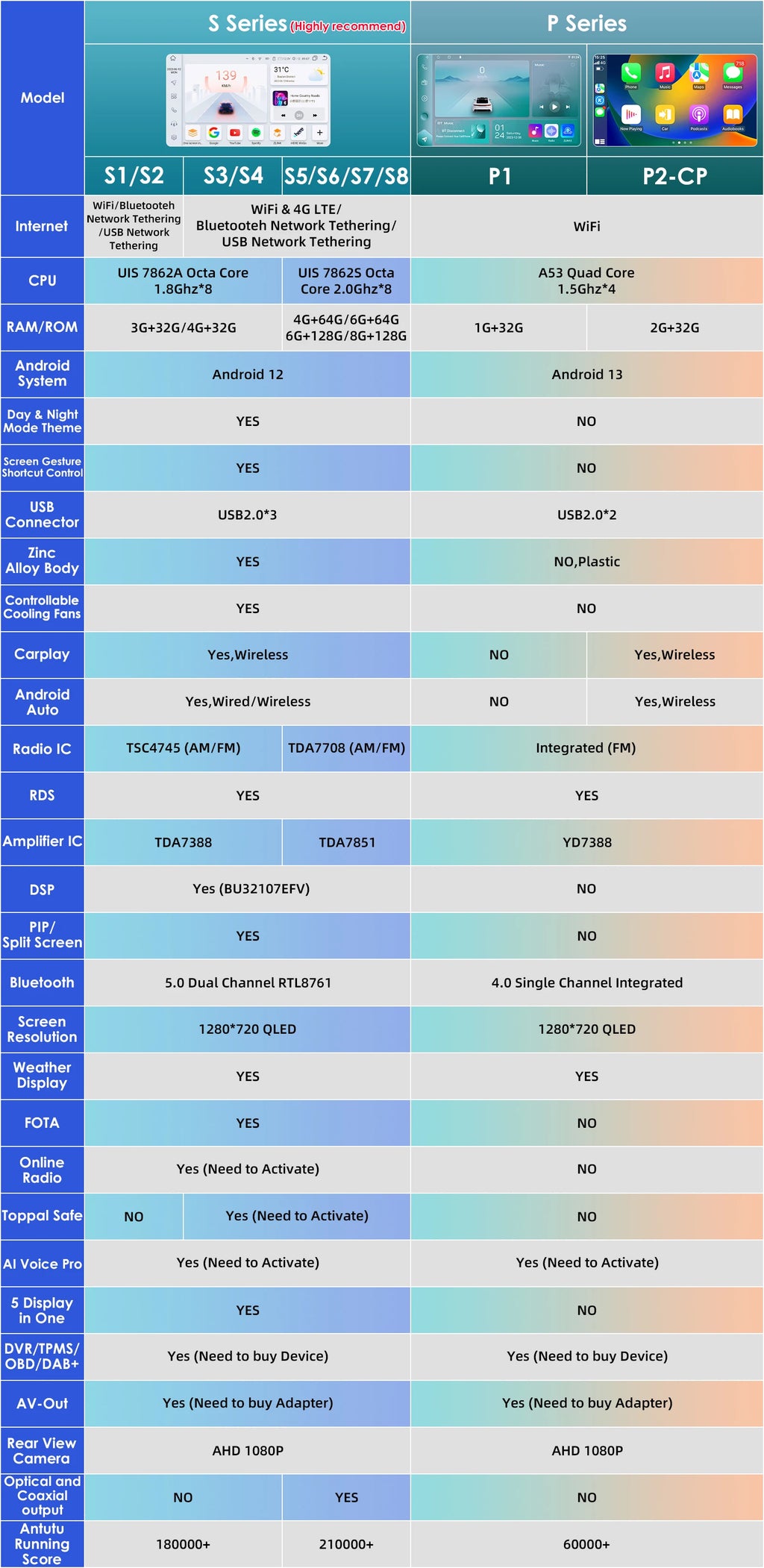 2) Built-in Carplay/ Android Auto:S1/S2/S3/S4/S5/S7/S8 versão de apoio, basta usar o cabo do telefone conectá-lo, estável e fácil de usar;