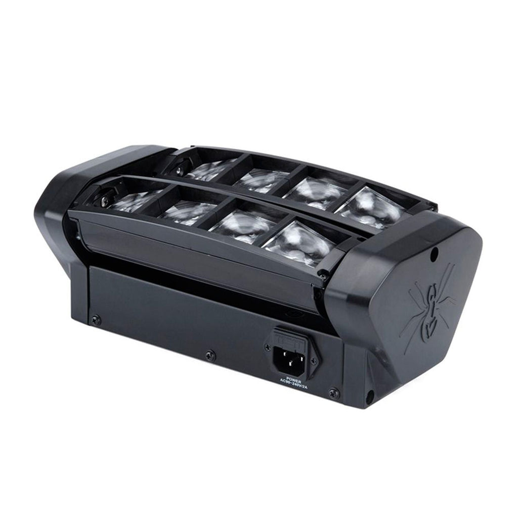 The effect offers multiple operation modes, including automatic, master/slave, sound active, and DMX control for precise movement control. It comes with an LCD display and 4 buttons for easy setting of DMX channels and adjusting all functions. The Spider effect has two DMX operation modes with 10 and 14 channels, offering great flexibility in use.