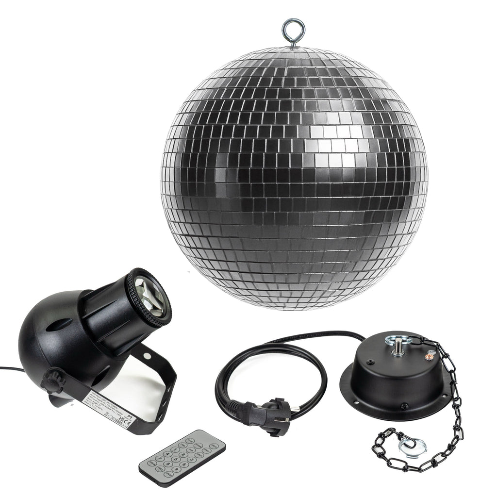 Set with a cool 30 cm mirror ball, motor, and a pinspot