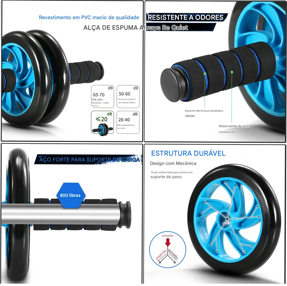 Rolo Abdominal Estável: Estrutura reforçada com tubo mais longo e pegas em espuma antiderrapante para maior conforto e estabilidade.