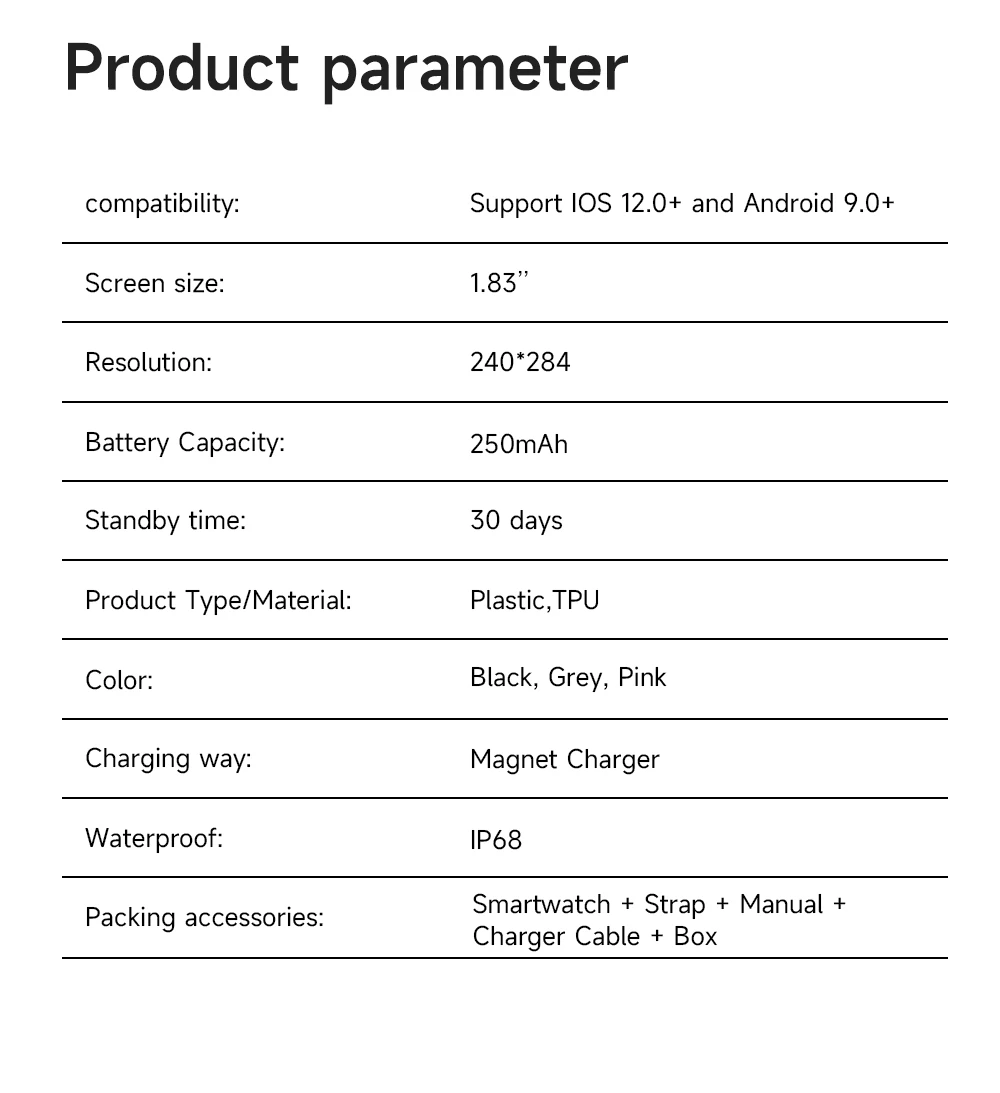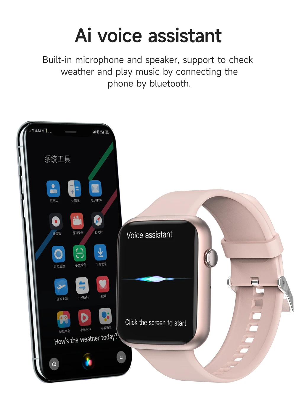 function: chronograph,COMPASS,Calendar,Alarm Clock,Countdown,Call Reminder,Answer Call,Mood Tracker,Message Reminder,Dial Call,Heart Rate Tracker,Activity Tracker,Social Media Notifications,Calorie Tracker,Voice Call,Breath Monitor,Distance Tracker,EMAIL,Sedentary Reminder,Video Call,Menstrual Management,AI voice assistant